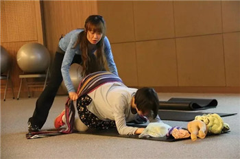 △孕妈妈们在罗睿老师的带领下进行分娩瑜伽操的练习,感受与新生命间的微妙互动