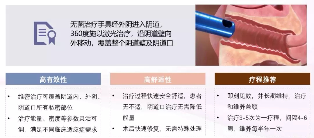 它通过可控的消融、凝固、热作用诱导胶原蛋白和弹性蛋白增生,针对女性产后阴道松弛、压力性尿失禁、阴道干涩疼痛、敏感度下降等问题进行综合系统科学的治疗。