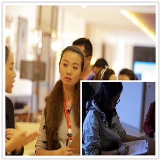 美女孕妈们认真听着安琪儿客服部主任的介绍,负责地在评分板上打分