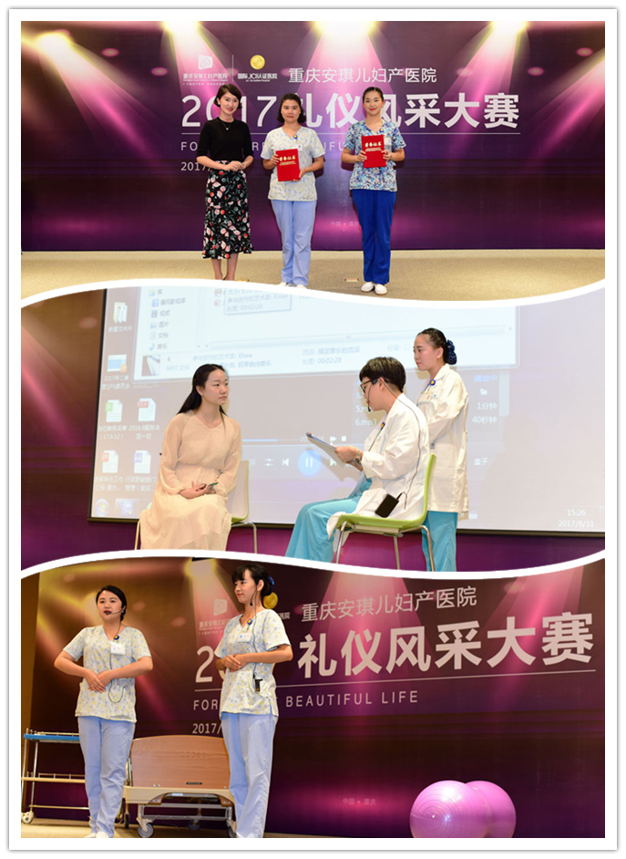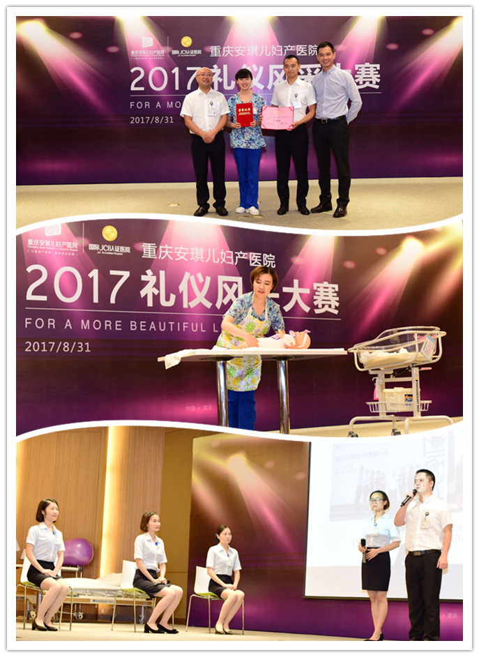 为进一步提升医疗服务品质,关注和满足客户需求,提升客户的就医体验,展现安琪儿规范服务标准日常化的精神风貌。2017年8月31日,重庆安琪儿妇产医院在院内举办了首届“礼仪风采大赛”。安控集团董事、医院运营总经理黄国强,安控集团运营长刘淑琴,医院院长陈启,安控集团服务品质部经理侯辰等出席大赛,并在比赛中担任评委。