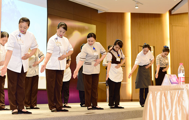 本次礼仪风采大赛,全院有10个代表队入选参赛,向评委及员工展示服务品质规范动作在日常的服务工作当中的应用。“您好,请问有什么可以帮您”,“很高兴为您服务”, “微笑点头礼”,“电话礼仪”,“握手礼仪”,有贴心的问候、礼貌的用语、温暖的笑容、热情的姿态,有情景剧、也有舞台SHOW,有配乐还有独白,形式和风格多种多样。