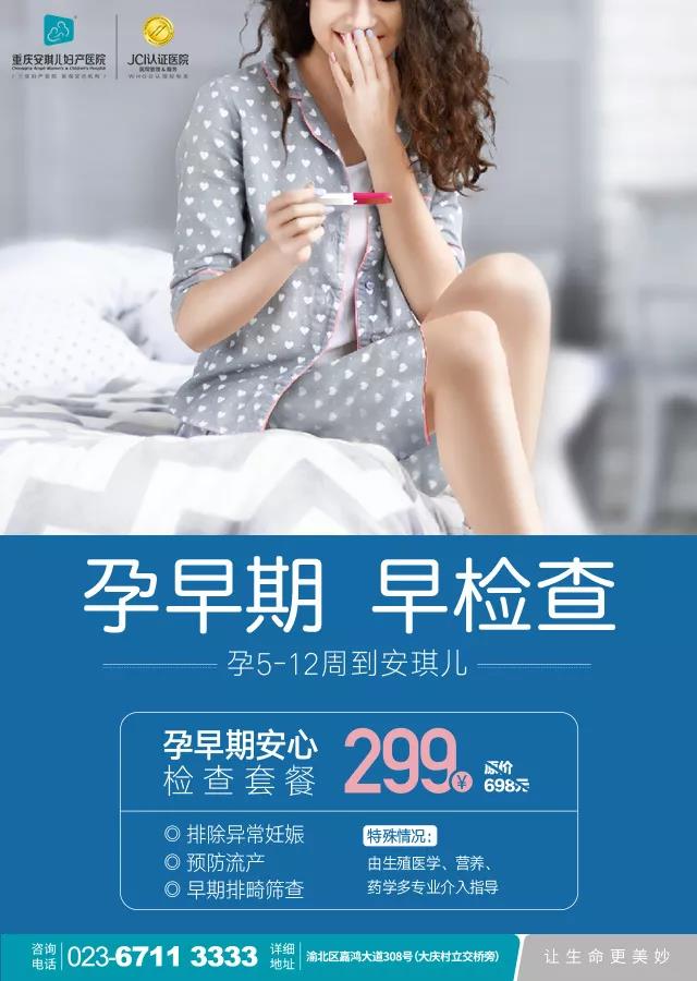 为了让孕妈能安心度过孕早期,通过全球严苛的国际JCI认证的重庆安琪儿妇产医院推出孕早期安心检查套餐。套餐除血HCG、孕酮和孕早期B超等早孕基础检查外,涵盖营养门诊项目,用药咨询评估。营养医师能帮助早孕女性了解自身饮食结构,分析营养状况,提供科学的个性化的孕期营养及饮食建议。药学门诊能帮助孕妈解决孕期用药的困扰。现在299元即可订购孕早期安心检查套餐,安琪儿守护孕妈稳稳度过孕早期。
