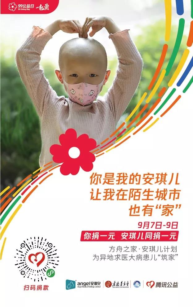 在9月7-9日期间您可以扫描海报上的小程序码进行捐款,无论您捐多少,安琪儿都会再捐赠一份同等金额的善款,意思就是:如果您捐一元,安琪儿也会再捐一元,您捐一百,安琪儿就再捐一百。安琪儿捐赠费用的上限为5万元人民币。项目筹集的所有善款都将用于建设供大病患儿家庭住宿的「方舟之家」。