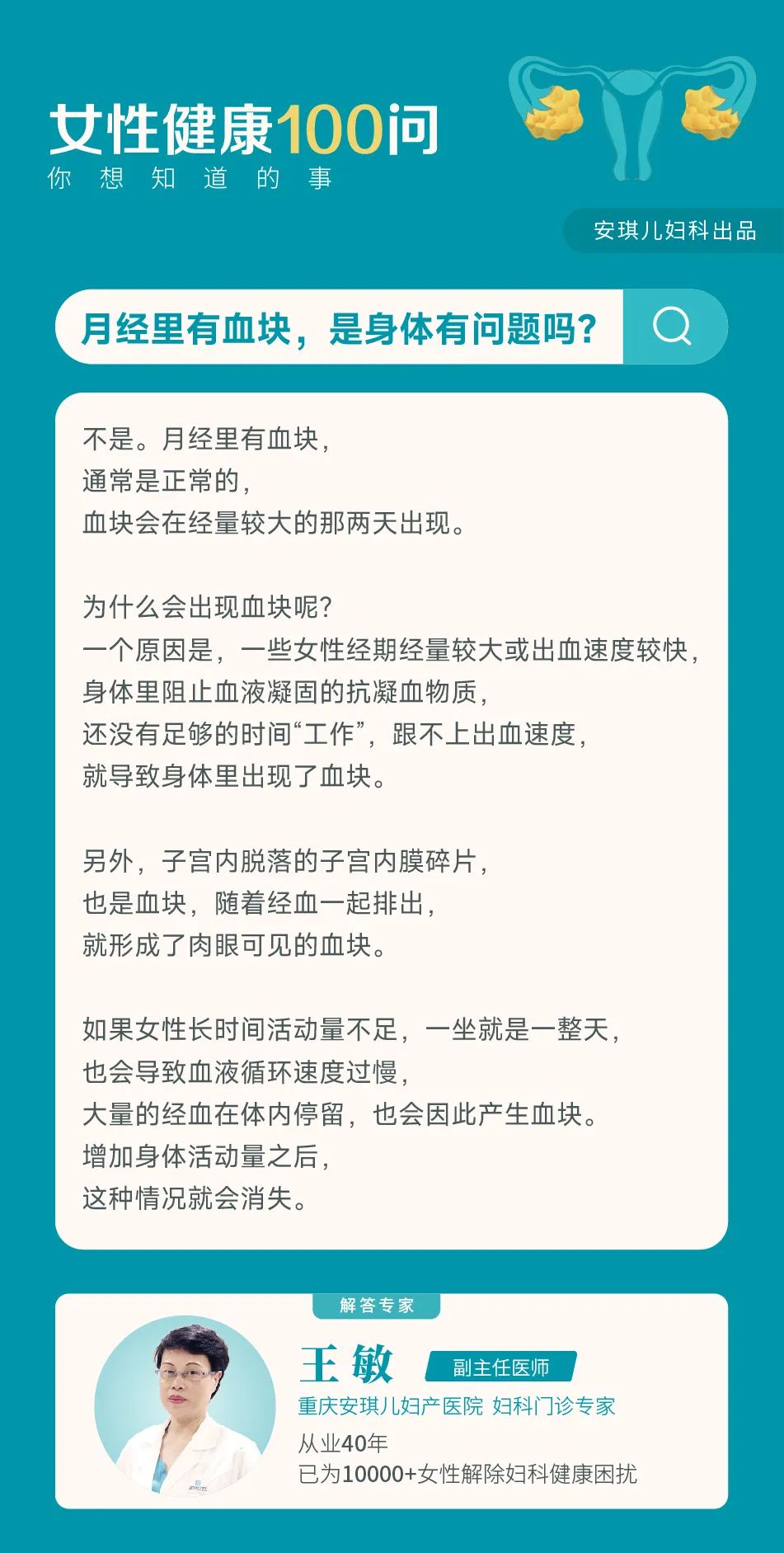 主页 > 走进Angel > 医院新闻 > 女性健康100问丨月经里有血块,是身体有问题吗? 2022-09-20 09:31 272 上一篇:女性腹痛请注意,可能是你的身体在“求助”! 下一篇:在重庆建档如何选择医院? 相关阅读/reading 女性健康100问丨剖腹产伤口什么时候能愈 女性健康100问丨“安环”避孕能一劳永逸 女性健康100问丨产后子宫恢复要多长时间 女性健康100问丨更年期补充激素会发胖吗 女性健康100问丨孕产期如何预防盆底功能 相关科室/The relevant departments 产科 月子 妇科 新生儿 儿保 生殖医学